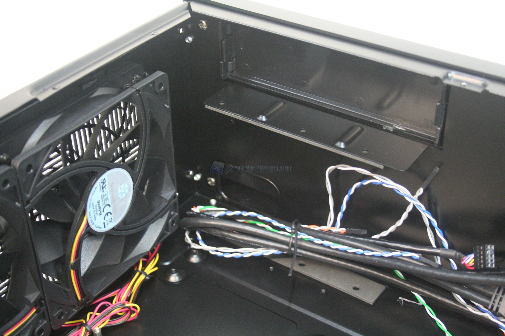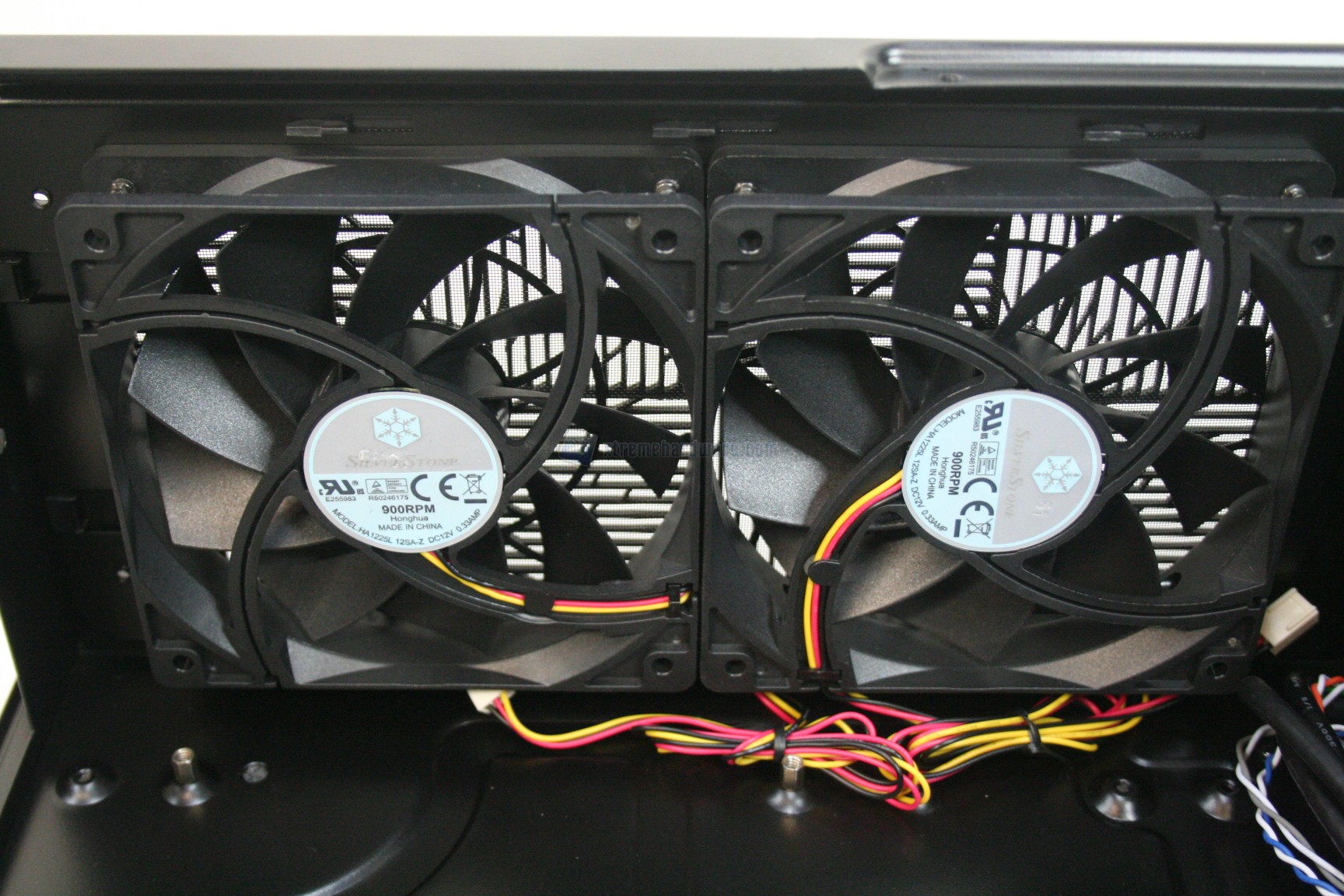 Come ventilazione interna, a pressione positiva, troviamo ben tre ventole da 120mm in immissione; le ventole sono state posizionate lateralmente e sono dotate di tre pratici filtri antipolvere, aventi una rimozione facilissima e veloce, a scorrimento orizzontale. Gli RPM (900) sono bassi e quindi la rumorosità conforme allo standard HTPC, praticamente nulla. Non è stato necessario effettuare misurazioni acustiche poiché il risultato, ad una distanza ordinaria, sarebbe stato inferiore al valore della rumorosità ambientale, per l'utilizzo di questo case (HTPC).