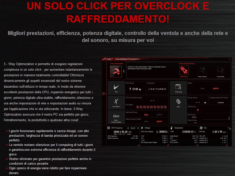 Migliori prestazioni, efficienza, potenza digitale, controllo delle ventole, della rete e del sonoro in semplicissimi click calibrati su misura per voi. In questo modo fate la differenza durante le sessioni di gioco dove rapidità e potenza danno una marcia in più per vincere.