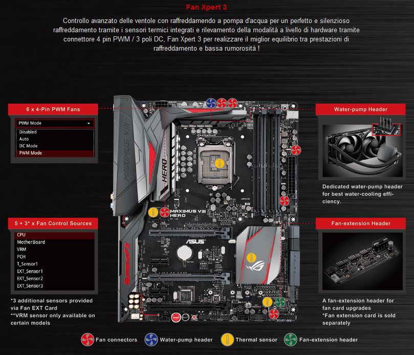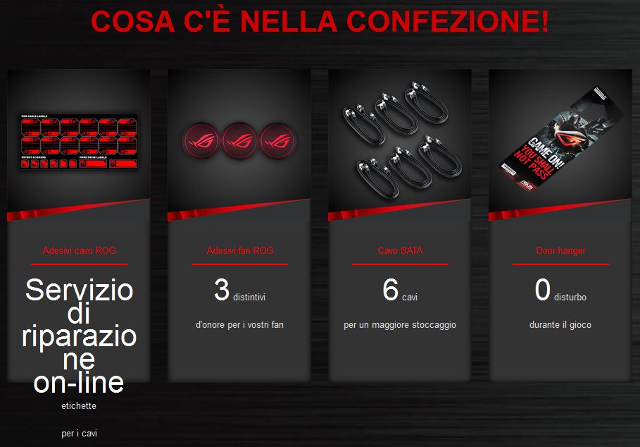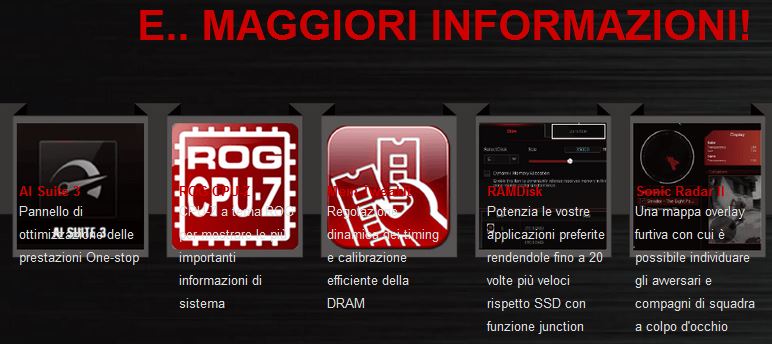 L’immagine disponibile anche sul sito del costruttore ci dà una chiara idea della complessità tecnico-costruttiva e della completezza che accompagna la serie ROG di schede madri.