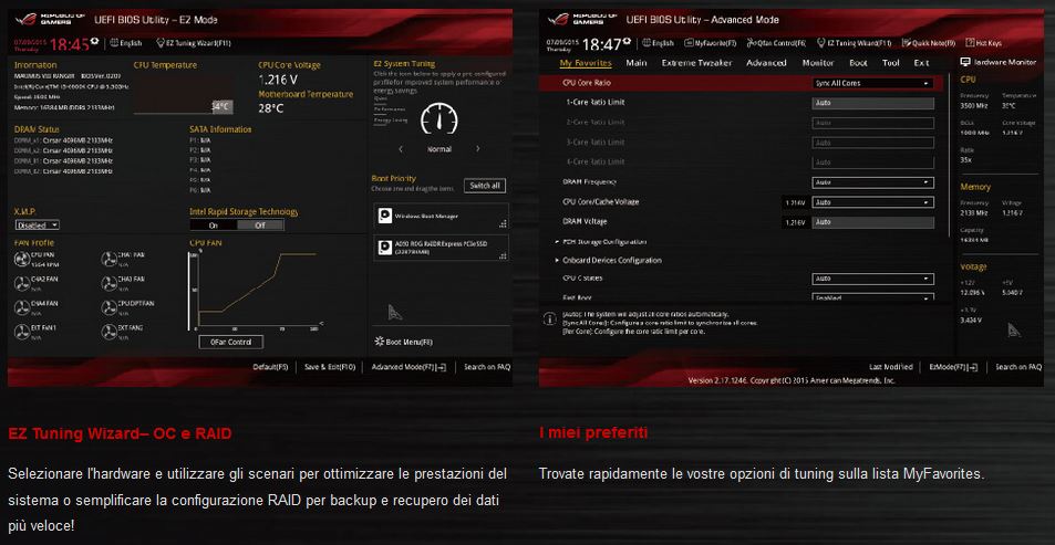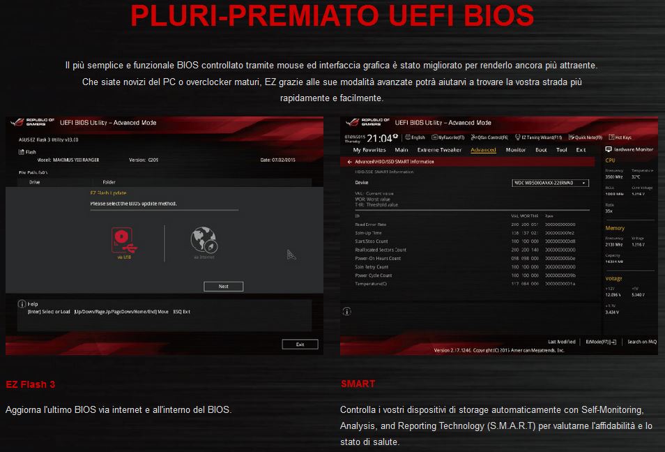 Lo sosteniamo da quanto è stata introdotta la prima interfaccia UEFI che Asus ha saputo cogliere i vantaggi messi a disposizione dal nuovo standard realizzando una perfetta interfaccia per il Bios. Il vantaggio è mettere a proprio agio i neofiti tramite la modalità EZ