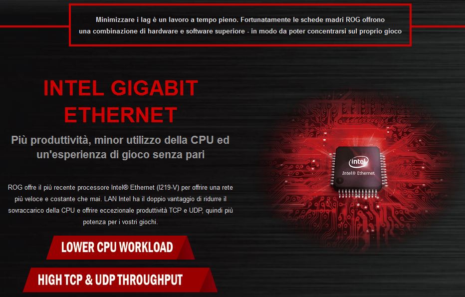 Più produttività, minor utilizzo della CPU ed un’esperienza di gioco senza pari grazie alle piattaforme ROG ed al recentissimo processore Intel® Ethernet (I219-V). Quindi una marcia in più specie nelle sessioni di Lan Party.