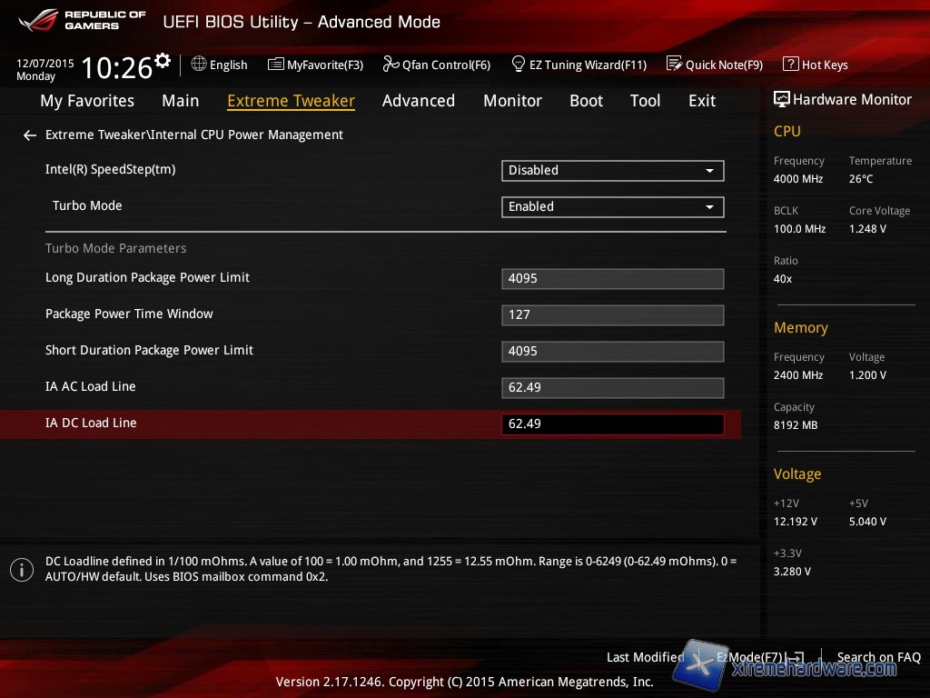 Nella sotto-sezione Internal CPU Power Management vi sono ulteriori parametri che incidono sulla potenza ed i regolatori interni al processore.