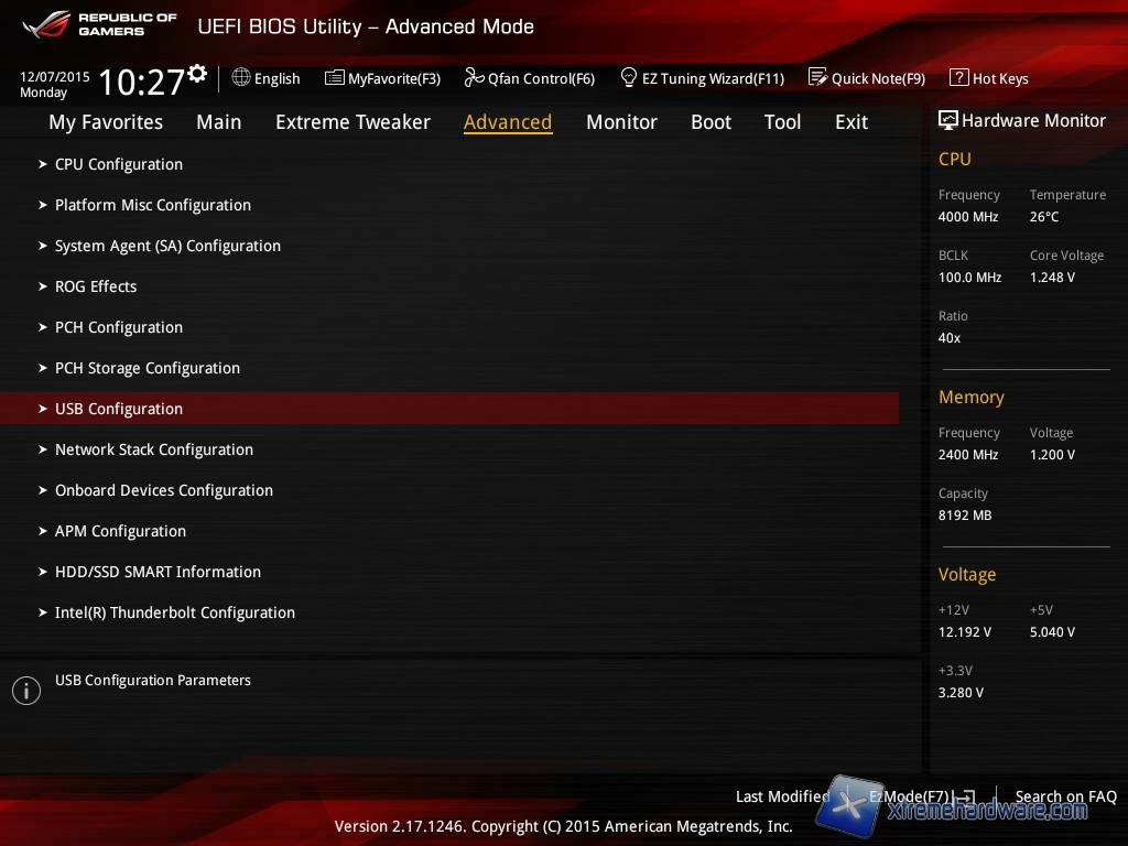 In altre sottosezioni USB Configuration, Network Stack Configuration oppure Onboard Devices Configuration è possibile configurare i dispositivi collegati al sistema.