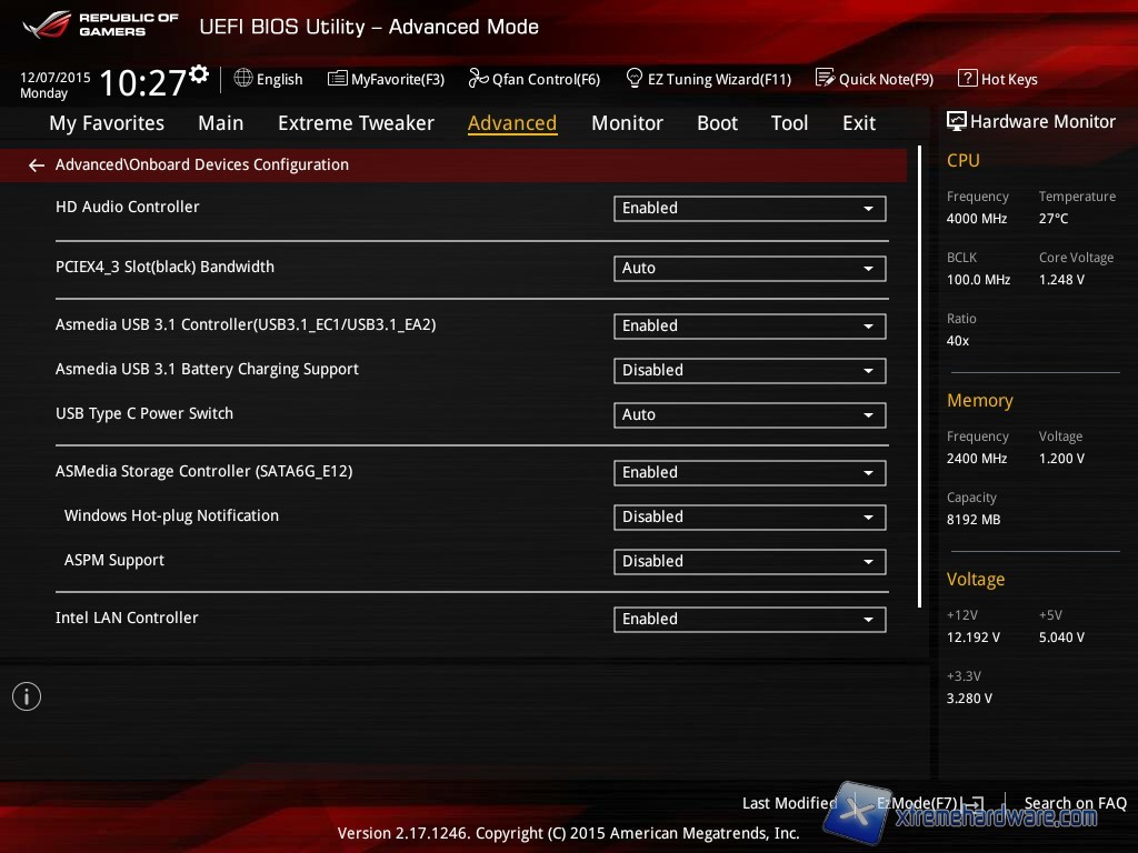 La schermata di default di accesso al BIOS è la EZ Mode che raggruppa i principali parametri come frequenza della CPU e RAM nonché temperatura e controllo delle ventole e l’EZ System Tuning per settare in modo rapido le 3 modalità: Quiet, Performance o Energy Saving. Ma la più ricca per voci disponibili su cui intervenire è la Advanced Mode. La navigazione come si evince è raggruppata tramite 8 schede che raggruppano le sezioni principali d’intervento.
